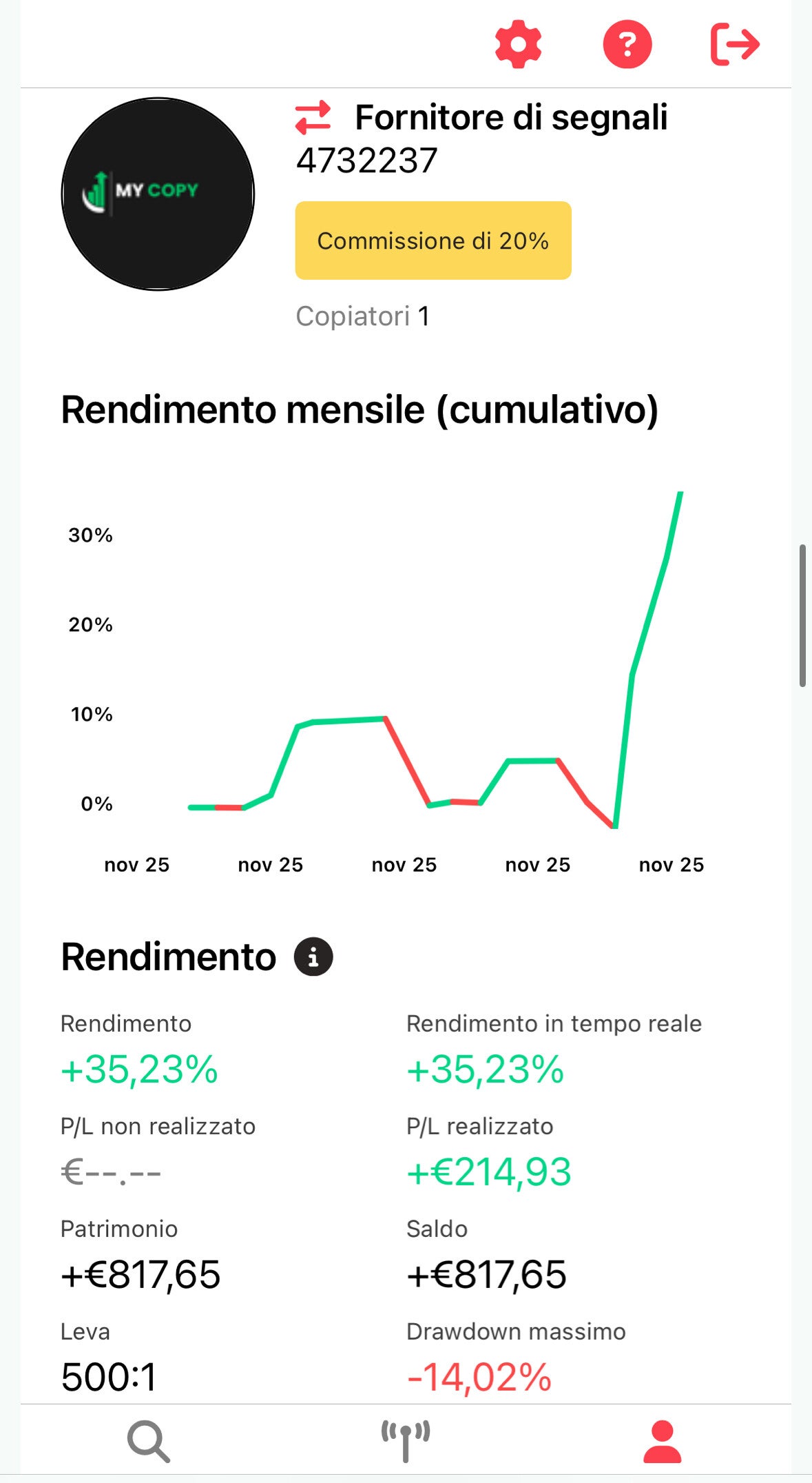 Con My Copy segui in automatico tutte le mie operazioni reali sui mercati, ottenendo risultati costanti e misurabili.